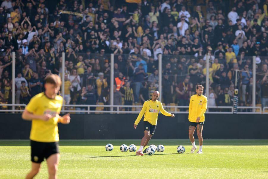 Το σύνθημα που... δονούσε την ατμόσφαιρα είναι το «Νάτοι-νάτοι οι Πρωταθλητές». Μάρκο Νίκολιτς και ποδοσφαιριστές με το που έκαναν την είσοδο τους στον αγωνιστικό χώρο αποθεώθηκαν και αμέσως πήγαν μπροστά στο πέταλο για να χαιρετήσουν και να ευχαριστήσουν τον κόσμο που έμεινε μέσα στο γήπεδο για περίπου μισή ώρα και αποχώρησε για να συνεχιστεί η προπόνηση.