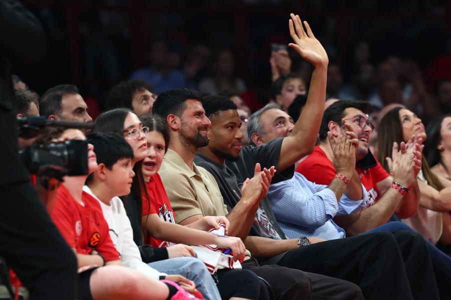 Ο Γιάννης Αντετοκούνμπο βρίσκεται στην Ελλάδα και κάθεται μαζί με τον κορυφαίο τενίστα, Νόβακ Τζόκοβιτς και τον πρόεδρο της Euroleague, Ντέγιαν Μποντιρόγκα, ο οποίος παρέδωσε το βραβείο του MVP της κανονικής περιόδου στον Σάσα Βεζένκοφ.